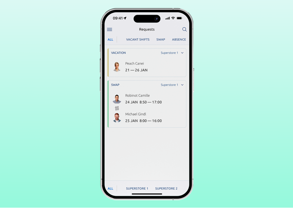 Få enkel tillgång till dina skift och registrera arbetstimmar med några få klick. Byt skift med kollegor vid behov.