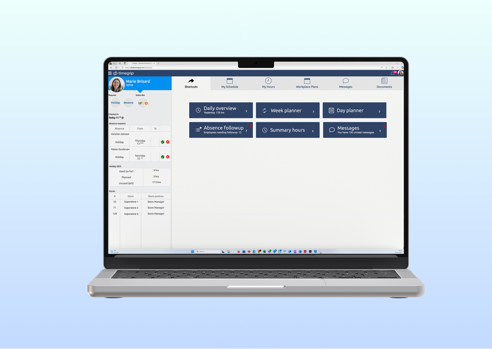 Med intuitiva verktyg och lösningar redo för integration säkerställer Timegrip att dina operativa processer är effektiva, skalbara och alltid följer regelverken. Från HR till lönehantering – effektivisera dina processer smidigt.